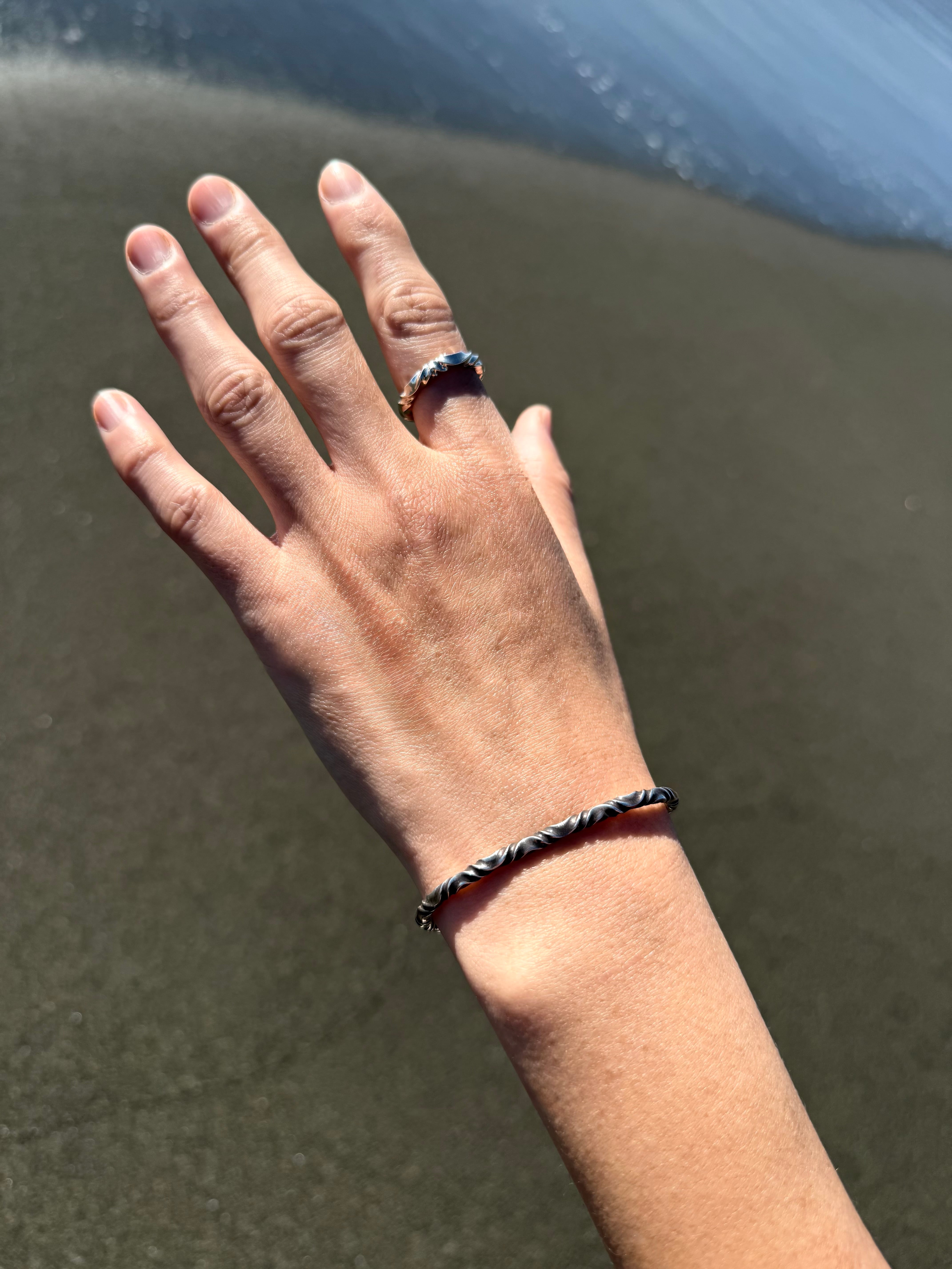 波のような流れるラインとユニークな造形が、まるで水の流れを感じさせ、装着することで心地よいエネルギーが生まれます。